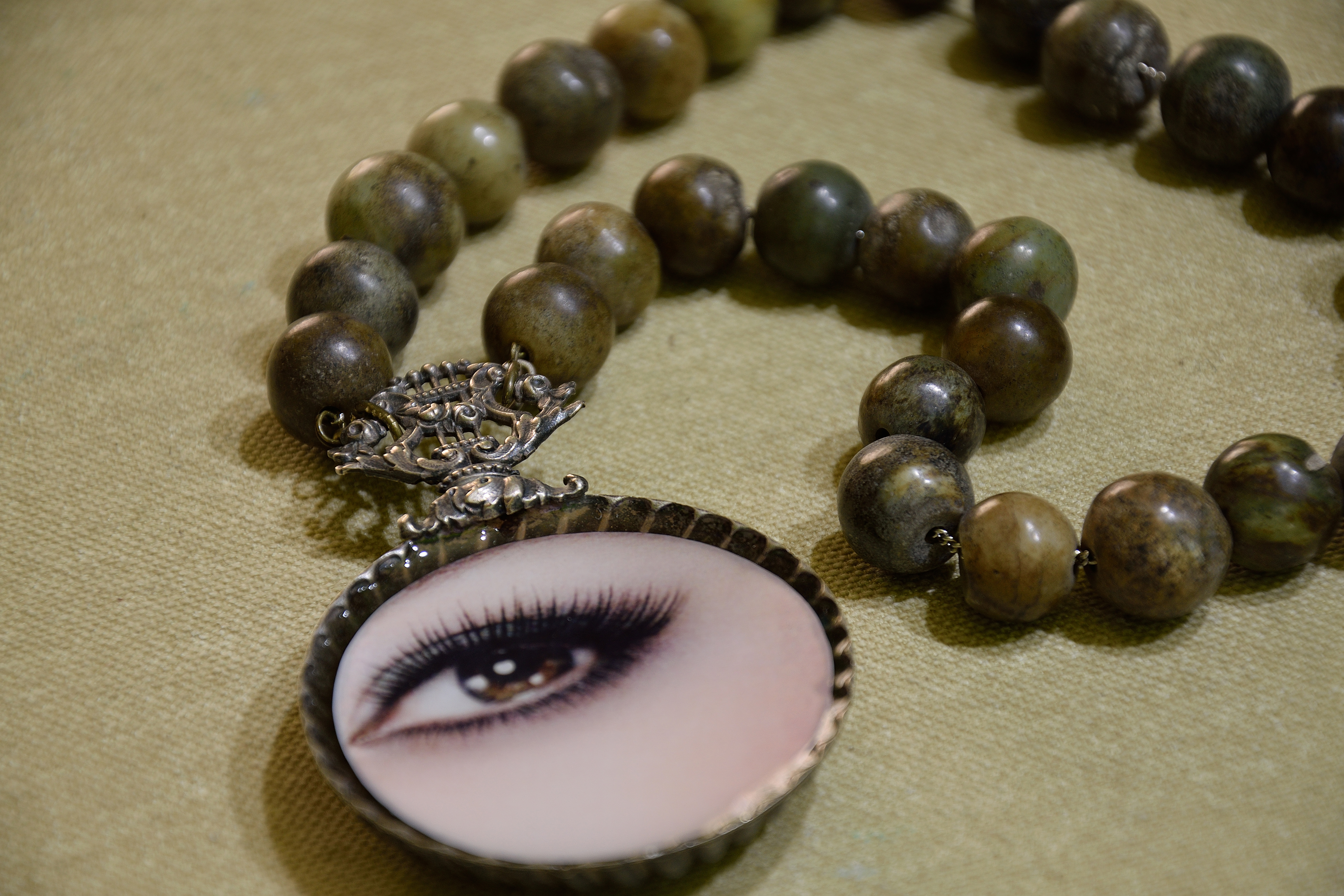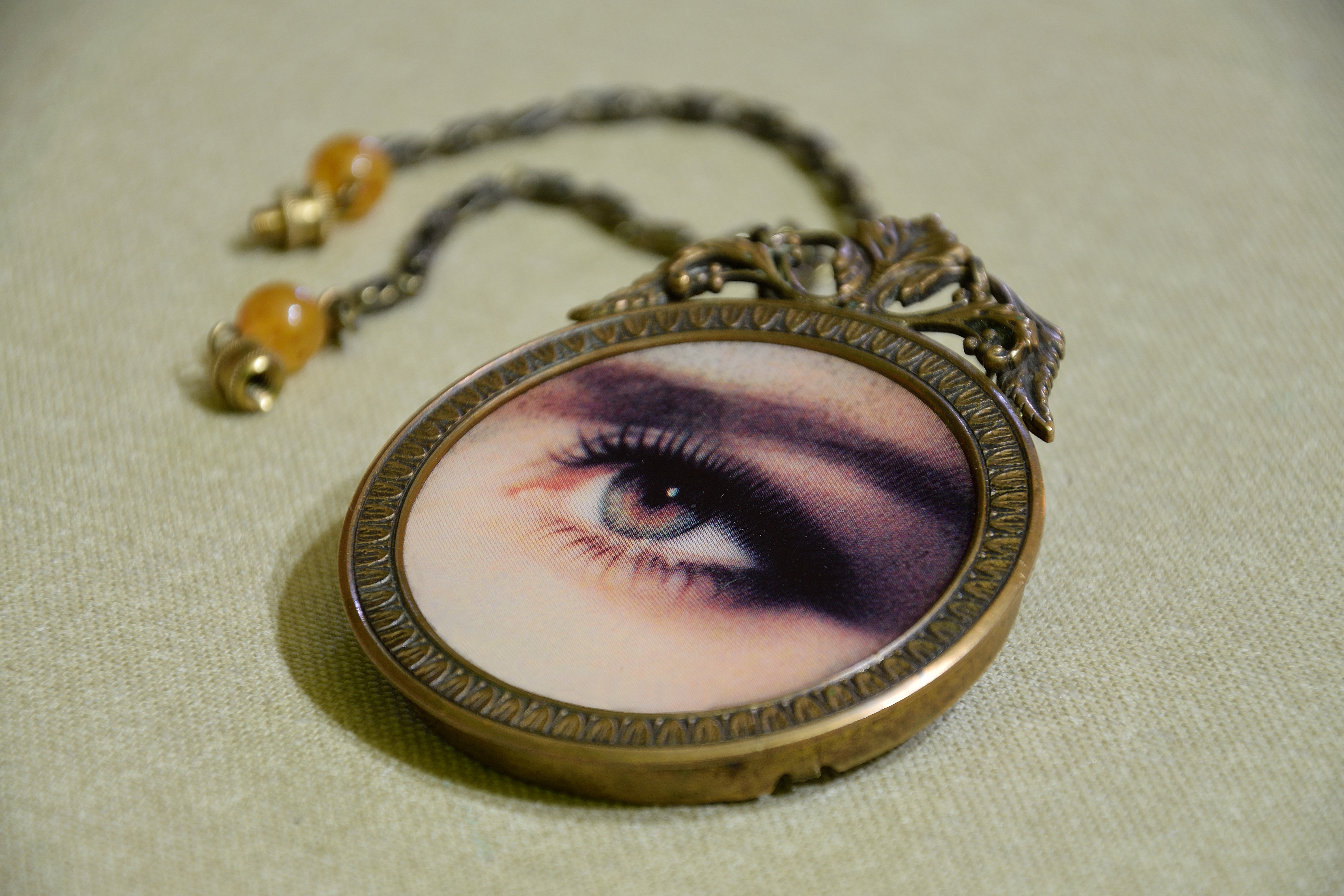 L’occhio, mio tema prediletto, si ispira al gioiello romantico d’epoca Vittoriana, che fin da giovanissima mi incantava dalle pagine dei libri d'Antiquariato: miniature magiche e fluttuanti su sfondo etereo, irreale e spirituale.